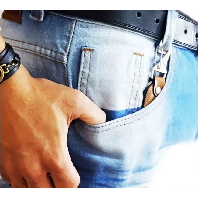 Chaveiro Preto JEEP em Couro com mosquetão e argola