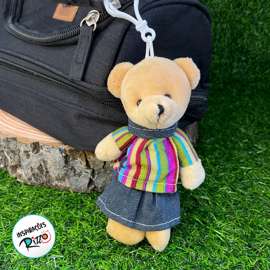 Chaveiro Urso de Pelúcia - Vestido Listrado Colorido - 14cm - 1 unidade - Rizzo