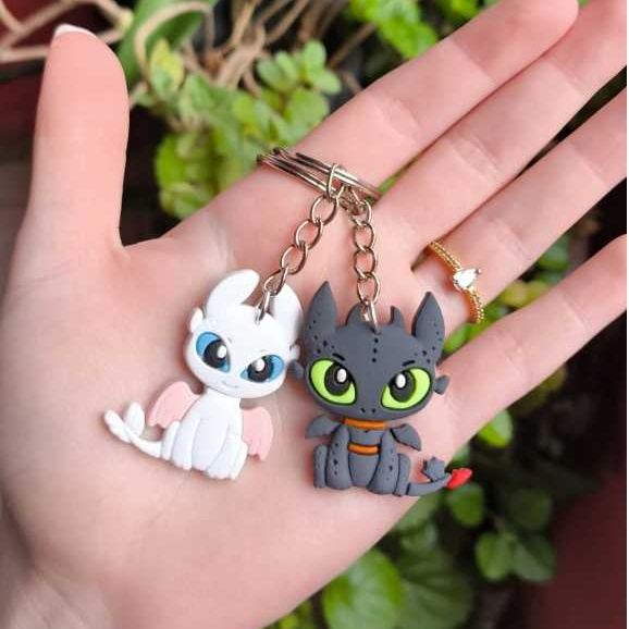 Chaveiros Emborrachados Dragões Banguela e Fúria da Luz Couple Geek Metadinha Presente Casal PVC