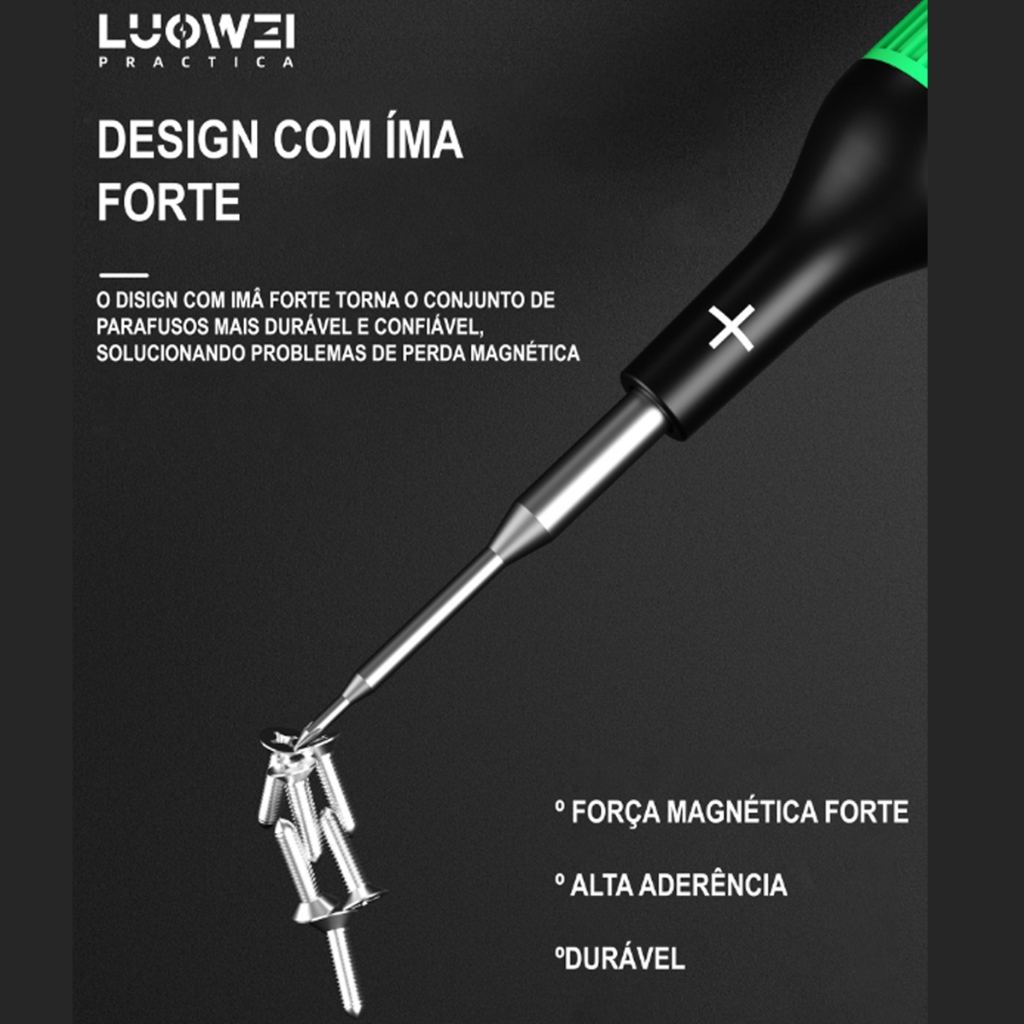 Chaves Luowei "Little Boy" são ferramentas de alta precisão, ideais para quem busca durabilidade e qualidade em reparos de eletrônicos, celulares, computadores e dispositivos delicados. Cada chave é fabricada com uma liga de alta resistência, oferecendo robustez e desempenho em qualquer desafio. Destaques da Qualidade: Material Resistente: Liga de alta durabilidade que garante resistência ao desgaste e à corrosão. Design Ergonômico: Cabo com revestimento antiderrapante para maior conforto e controle durante o uso. Precisão Extrema: Desenvolvidas para desmontagens e reparos delicados, com pontas que fixam firmemente os parafusos. Ponta Magnética: As pontas magnéticas facilitam o manuseio de pequenos parafusos, evitando quedas e perdas. Modelos Disponíveis: As chaves são vendidas individualmente. Escolha o modelo ideal para o seu projeto: Chave Phillips Chave de Fenda Plana Chave Torx Chave Hexagonal Chave Tri-Wing Especificações Técnicas: Marca: Luowei Practica Material: Liga de alta resistência Ponta Magnética: Sim, para facilitar o uso com parafusos pequenos Aplicações: Reparos de eletrônicos, dispositivos móveis, computadores, entre outros. Design Compacto: Ideal para profissionais e amadores que buscam precisão e praticidade. Observação: As chaves são vendidas separadamente. Selecione o modelo específico que atende às suas necessidades e adicione qualidade e precisão às suas ferramentas. Invista na qualidade das Chaves Luowei "Little Boy" para realizar reparos com confiança e eficiência!