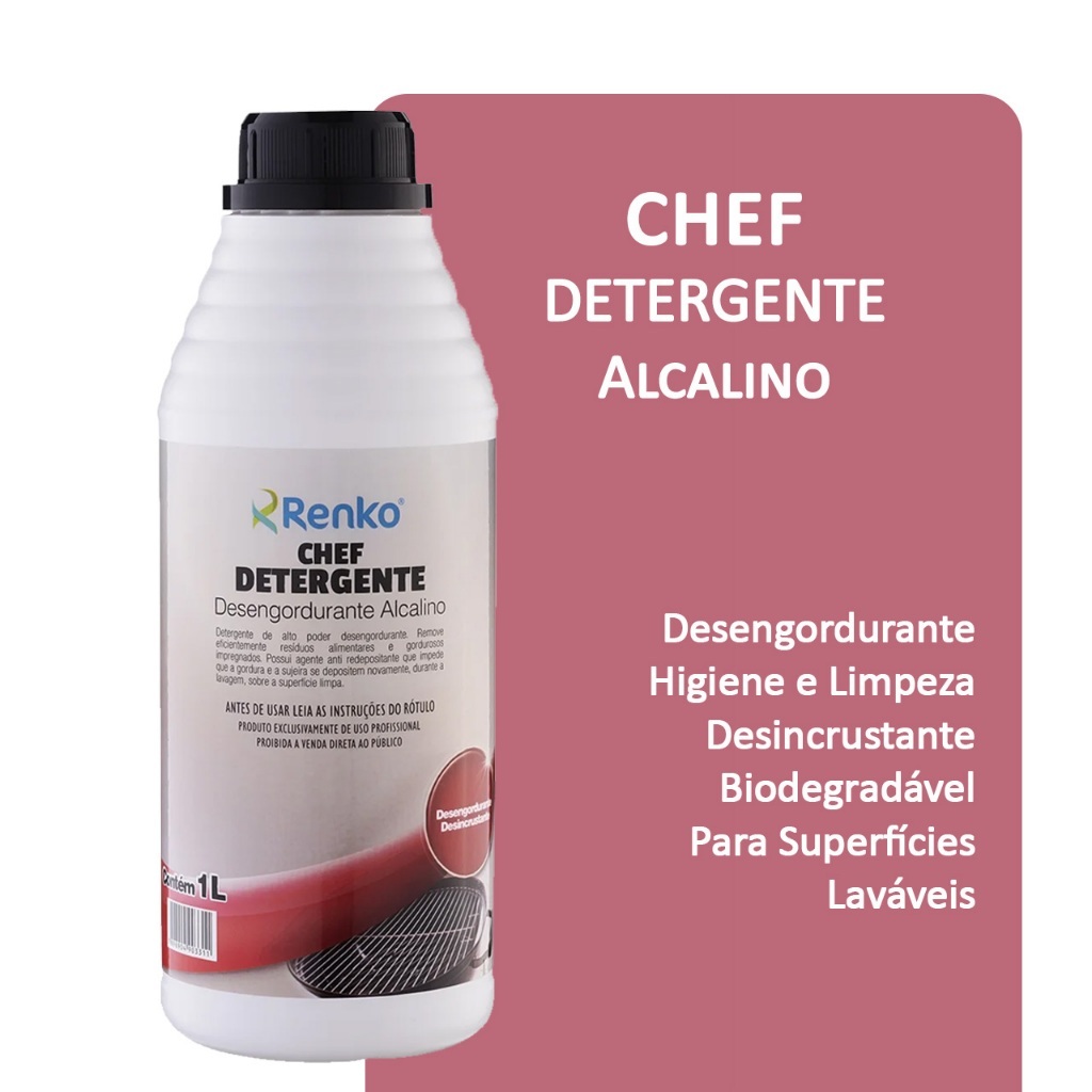 | Chef Detergente Desengordurante Alcalino Concentrado 1 Litro - Renko este produto | R$ 26,00 | 13% | 4.8/5 | 27 |