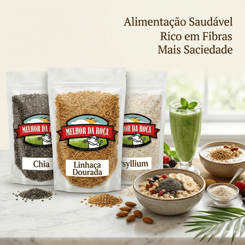 Chia Premium e Linhaça Dourada e Psyllium Fibras Granel - Saciedade e energia Premium