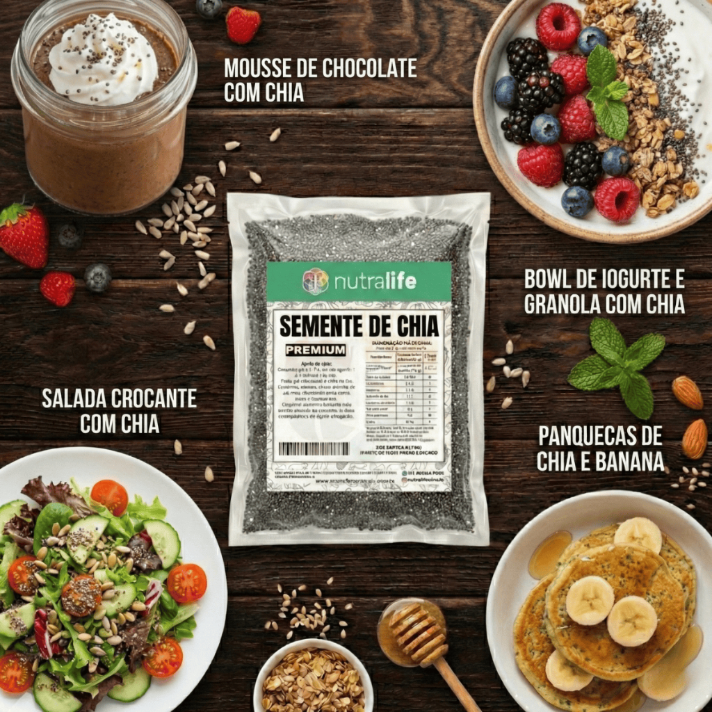 🟢 Descrição do Produto – Chia Preta Premium | Força e Nutrição Natural A Chia Preta Premium é um verdadeiro tesouro nutricional em forma de semente. Originária de culturas ancestrais, ela se tornou indispensável na rotina de quem busca equilíbrio e praticidade. Quando em contato com líquidos, a chia cria uma consistência gelatinosa única, tornando-se uma base perfeita para receitas saudáveis, funcionais e altamente nutritivas. ✨ Por que escolher a nossa Chia Preta? - Pureza Superior: Sementes selecionadas, livres de impurezas e resíduos. - Alto Rendimento: Grãos com alto poder de absorção, ideais para o preparo de géis e pudins. - 100% Natural: Sem glúten, sem conservantes e sem aditivos químicos. - Embalagem à Vácuo: Processo que garante que as propriedades nutricionais e o frescor da semente cheguem intactos até você. 🌿 Benefícios: ✔ Concentração de Fibras: Excelente aliada para o equilíbrio do ritmo intestinal e aumento da sensação de saciedade. ✔ Fonte de Ômega 3: Possui ácidos graxos essenciais que complementam uma dieta voltada ao bem-estar. ✔ Aporte de Cálcio e Magnésio: Minerais fundamentais que auxiliam na manutenção de uma rotina saudável e ativa. ✔ Proteína Vegetal de Qualidade: Ótima opção para quem busca fontes alternativas de proteína em dietas variadas. ✔ Baixo Índice Glicêmico: Ideal para quem deseja manter uma alimentação equilibrada e sem picos de energia. 🥄 Modo de Uso: Adicione 1 colher de sopa em sucos, vitaminas, iogurtes ou frutas picadas. Para fazer o famoso "Pudim de Chia", deixe as sementes de molho em leite vegetal ou iogurte por pelo menos 30 minutos. Também pode ser usada como substituta do ovo em receitas de bolos e massas funcionais.