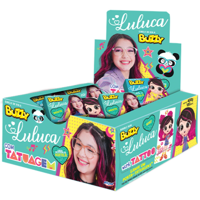 Com uma nova parceria incrível, a Riclan traz mais um fenômeno da internet. O novo Buzzy Luluca está disponível nos deliciosos sabores Tutti-Frutti e Hortelãe ainda conta com um porta-tatuagens para você se divertir. ALÉRGICOS: CONTÉM DERIVADOS DE SOJA NÃO CONTÉM GLÚTEN Peso Líquido: 400g Contém: 100 Unidades Ingredientes: Açúcar, Xarope de glucose, Goma base, Aromatizante, Umectante, glicerina, Emulsificante, e Corante. Informação Nutricional: Porção de 4g (1 unidade). Valor energético 12 kcal = 50 kJ (1%). Carboidratos 3g (1%). Proteínas 0g. Gorduras totais 0g. Gorduras saturadas 0g. Sódio 0mg. Somos uma loja especializada em artigos de festa, confeitaria, embalagens e doces com lojas físicas no estado de São Paulo, desde 2002. Imagens meramente ilustrativas. Todas as Informações divulgadas são de responsabilidade do fabricante/fornecedor.