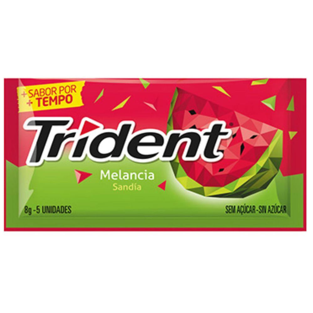 Chiclete Trident Melancia Twist 8gO Chiclete Trident Melancia Twist é uma goma de mascar sem açúcar. Seu sabor dura por muito mais tempo que um chiclete comum além das poucas calorias presentes.