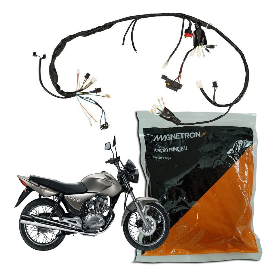 Chicote Fiação Principal Titan 150 Es/Esd 04 A 08 Magnetron Desde 1960 a MAGNETRON desenvolve, industrializa e comercializa componentes elétricos e mecânicos para motocicletas e sistemas de ignição para motores a combustão destinados ao mercado de reposição e montadoras com o compromisso de assegurar permanentemente a qualidade dos produtos. Os produtos MAGNETRON são projetados por engenheiros especializados; Matéria prima de alta qualidade; Garantia de produtos confiáveis e que evitam manutenções constantes. INFORMAÇÂO: * ES - Motos que possuam apenas partida elétrica * ESD - Motos que possuam partida elétrica e freio a disco REFERENCIA: 90285210 (CÓD. 32100-KRM-850) Aplicação: - Honda CG Titan 150 ES 2004 até 2008; - Honda Cg Titan 150 ESD 2004 até 2008. Marca: Magnetron GARANTIA: 3 Meses Obs: Recomendamos a instalação por um profissional qualificado. A garantia do produto é válida apenas para defeito de fabricação, desgaste natural e mau uso não são válidos para a garantia.