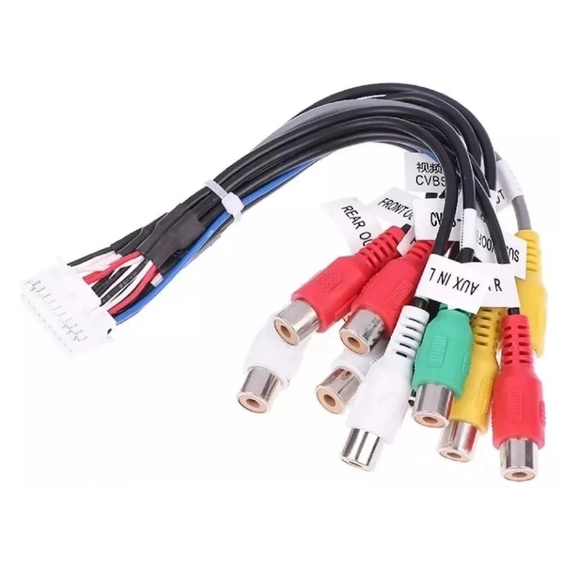 Chicote Rca Cabo Universal Central Multimídia Android CHICOTE UNIVERSAL 7 RCA PARA CENTRAL ** OBSERVAÇÃO : Algumas das fotos é apenas um ilustrativo. Este RCA contem apenas 7 saídas ___________________________________________________________________________________________________ MULTIMÍDIA ANDROID 7 RCA 1. Vídeo out 2. CVBS-IN-1 3. FL out 4. Aux. L in 5. FR out 6. Aux. R in 6. Line out Sub Woof 7. AMP cont
