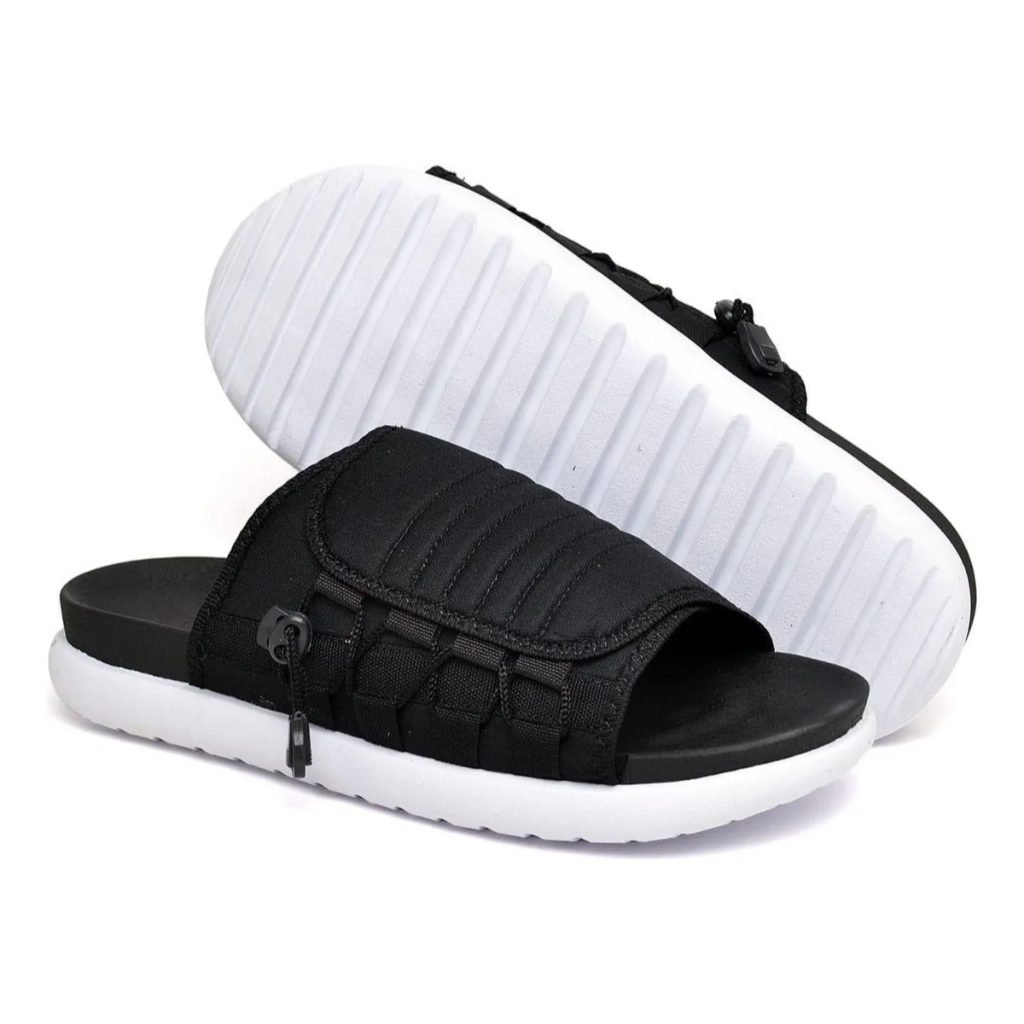 Chinelo Masculino Asuna Slide - Preto/Branco O Asuna Slide é o chinelo ideal para quem busca conforto, estilo e praticidade no dia a dia. Com um design moderno e urbano, ele combina uma palmilha super macia com um sistema de ajuste exclusivo que garante firmeza e adaptação ao pé. Destaques do produto: Conforto premium: Palmilha em espuma macia que proporciona amortecimento a cada passo. Ajuste personalizado: Sistema de amarração com cordão elástico e trava, oferecendo ajuste seguro e estiloso. Solado robusto: Solado com ranhuras profundas para tração em diferentes superfícies e visual moderno. Versatilidade: Ideal para uso pós-treino, no dia a dia ou em momentos de lazer. Seja na cidade, na praia ou em casa, o Asuna Slide oferece um visual contemporâneo e a confiabilidade que você procura. Cor: Preto com solado branco Material: Têxtil com solado em borracha Categoria: Chinelo Slide Masculino 👉 Garanta já o seu e leve o máximo de estilo e conforto para seus pés! Tabela de Tamanhos (Masculino): Tamanho 37 — 24,5 cm Tamanho 38 — 25,0 cm Tamanho 39 — 25,5 cm Tamanho 40 — 26,5 cm Tamanho 41 — 27,0 cm Tamanho 42 — 27,5 cm Tamanho 43 — 28,5 cm Tamanho 44 — 29,0 cm Como medir: Coloque o pé sobre uma folha, marque do calcanhar até a ponta do dedo mais longo e meça com uma régua. Compare com os valores acima para escolher o tamanho ideal.