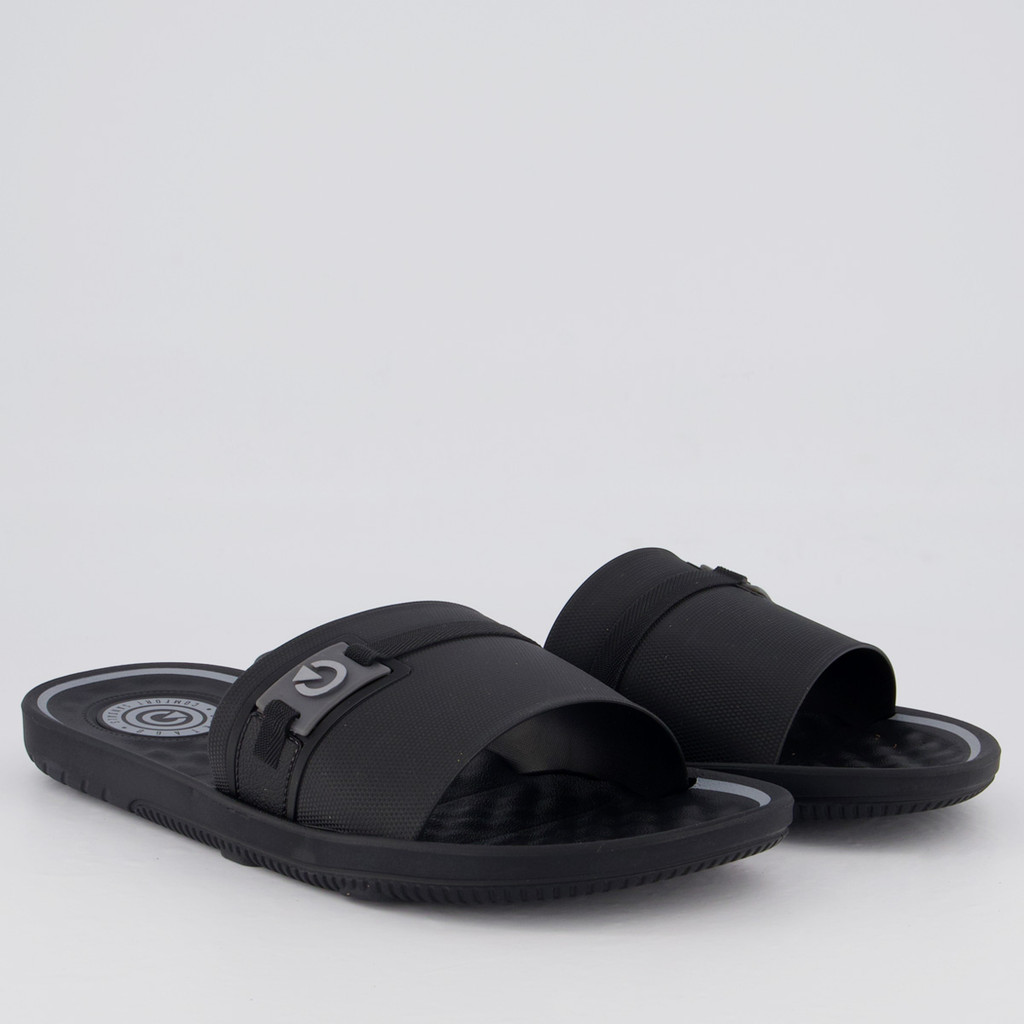 Composição tira: Material sintético Cor predominante: Preta Solado: 100% borracha Indicado para: Casual Composição: Borracha Gênero: Masculino Origem: Nacional Tira: Unica Peso aproximado: 470g o par n° 40
