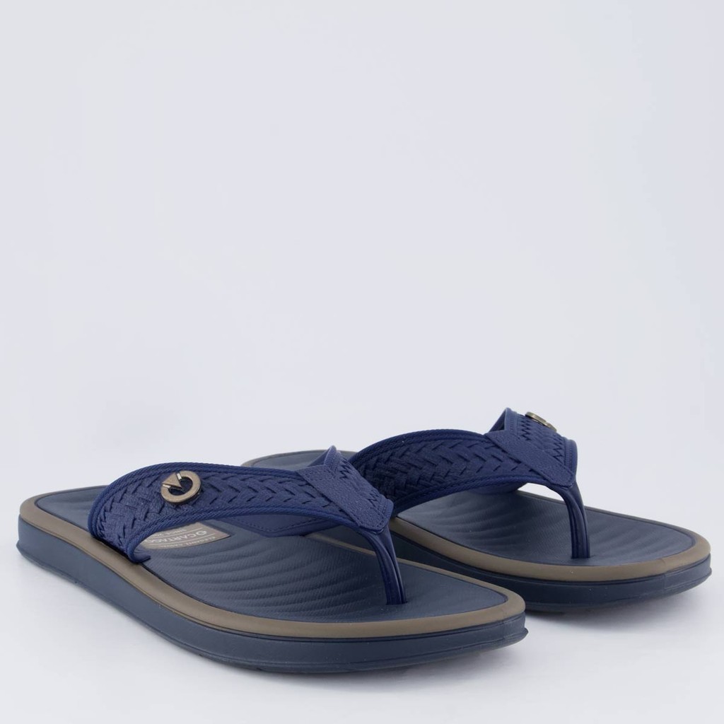 Composição tira: Material sintético Cor predominante: Marinho Tira: Divisora de dedos Solado: 100% borracha Indicado para: Casual Composição: Borracha Gênero: Masculino Origem: Nacional Peso aproximado: 470g o par n° 40