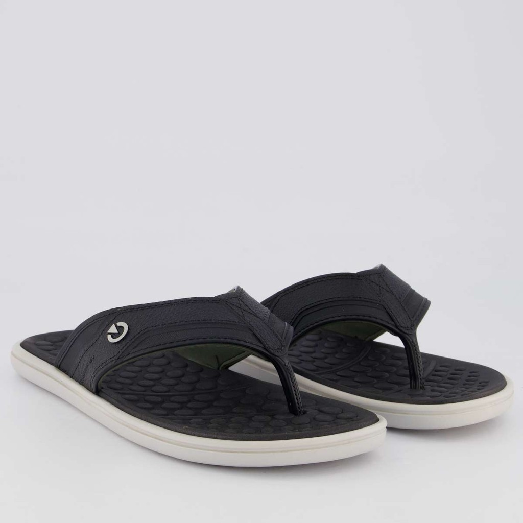 Composição tira: Material sintético Cor predominante: Preta Tira: Divisora de dedos Solado: 100% borracha Indicado para: Casual Origem: Nacional Gênero: Masculino Peso aproximado: 440g o par n° 40