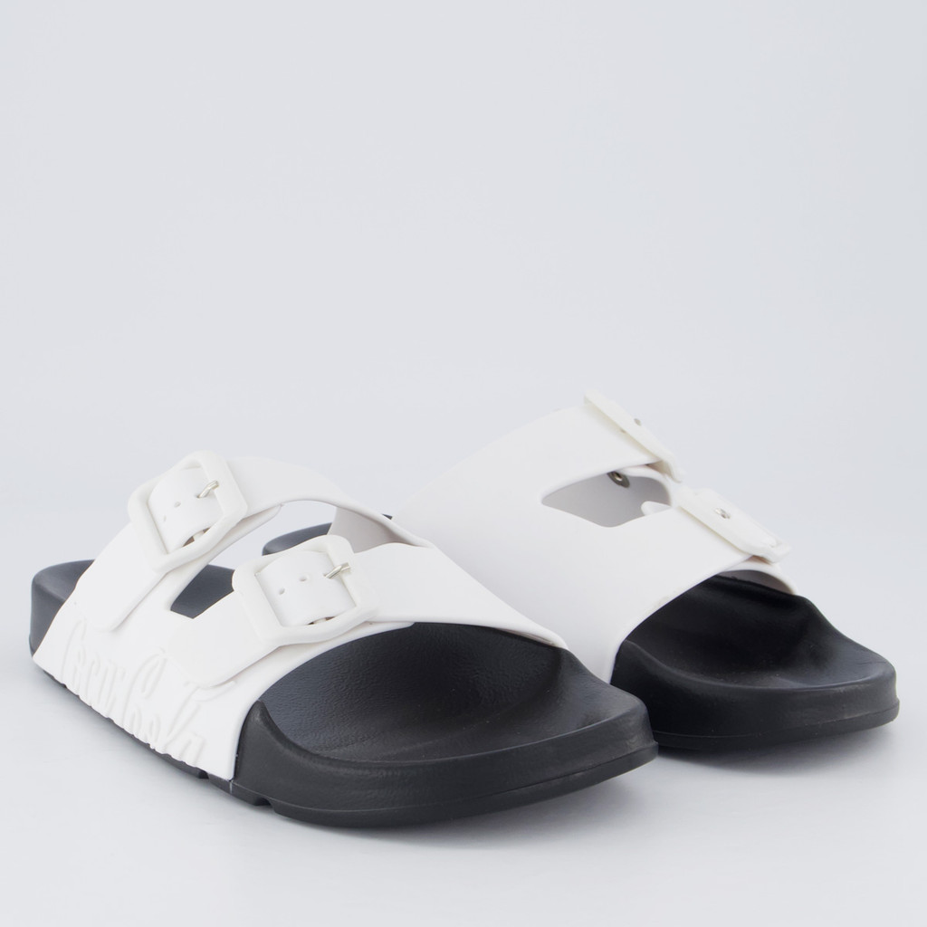 Gênero: Unissex Origem: Nacional Indicado para: Casual Composição: 100% EVA Cor predominante: Branco e preto Tira: Duas tiras com fivela de plástico Composição tira: Material sintético Peso aproximado: 400g o par n°39/40
