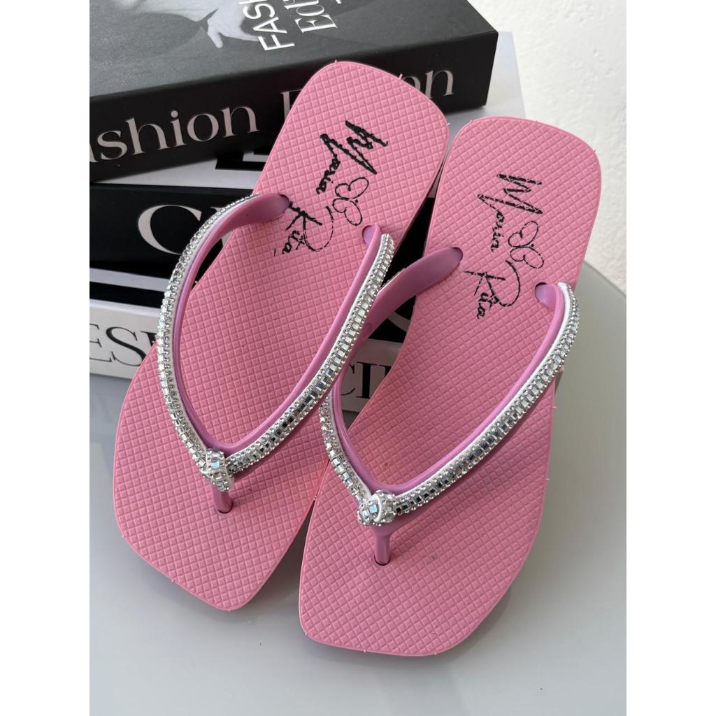 Chinelo De Dedo Básico Com Strass Bico Quadrado Colorido F MR