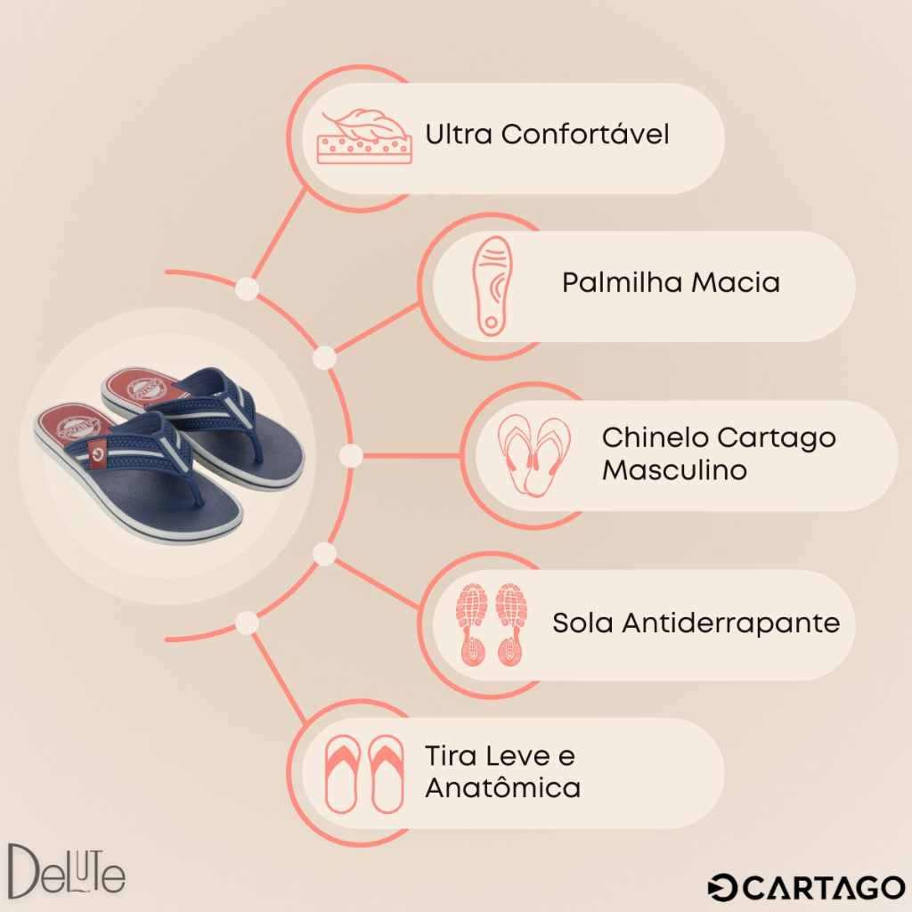 Chinelo de Dedo Cartago Modelo Palermo Masculino Ultra Confortável Antiderrapante Adulto Casual