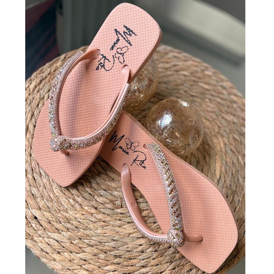 Chinelo De Dedo Feminino Adulto Com Correia de Strass Bico Quadrado G MR