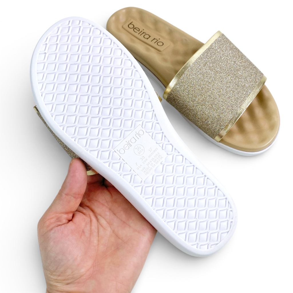 Chinelo Feminino Beira Rio Slide Sandália Rasteirinha Glitter Dourado Original