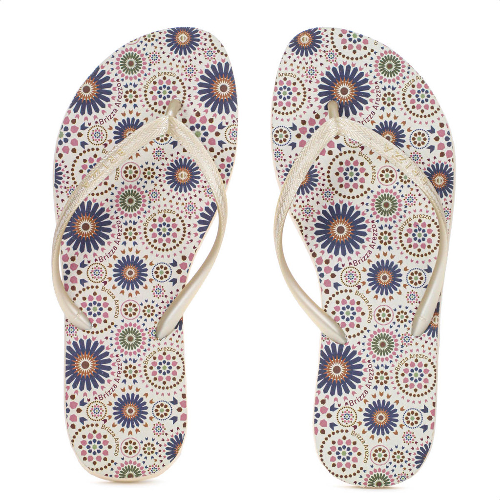 Estilo e conforto em cada passo! Chinelo Brizza Arezzo Estampa Marrocos Bege - Feminino Ficha Técnica: Marca: Brizza Arezzo Cor: Bege com detalhes em azul, rosa, verde e marrom Cabedal: Borracha Gênero: Feminino Palmilha: Texturizada com estampa de mosaicos marroquinos Tiras: Finas injetadas, levemente dourada, com aplicação da marca Sola: Emborrachado flat Entressola: EVA confortável Indicação: Dias quentes, passeios e uso diário Detalhes: Design anatômico com conforto térmico para o verão, formato arredondado, leveza e visual moderno com referência cultural Conforto e charme se encontram no Chinelo Brizza Arezzo. Com design inspirado em mosaicos marroquinos, ele traz sofisticação em qualquer momento. Porque investir: Suas tiras delicadas com aplicação da marca e a palmilha estampada unem beleza e leveza para o dia a dia. Ideal para acompanhar produções leves e garantir estilo nos dias mais quentes. Deixe seu visual mais interessante com um toque cultural e despojado. Conteúdo da embalagem: 1 par de Chinelo Brizza Arezzo Estampa Marrocos Bege - Feminino