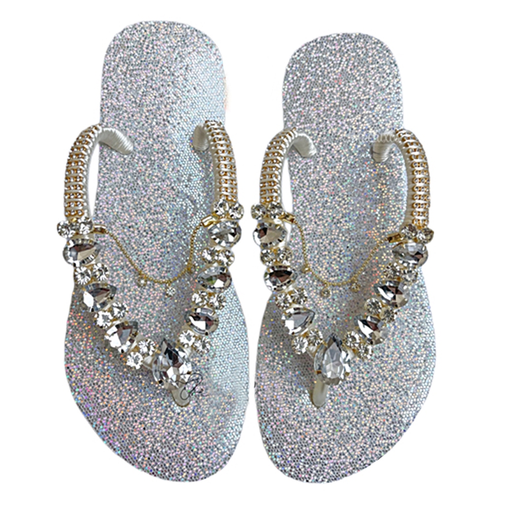 Chinelo Feminino Original - Personalizado com Pedrarias e Estampa Prata Cintilante