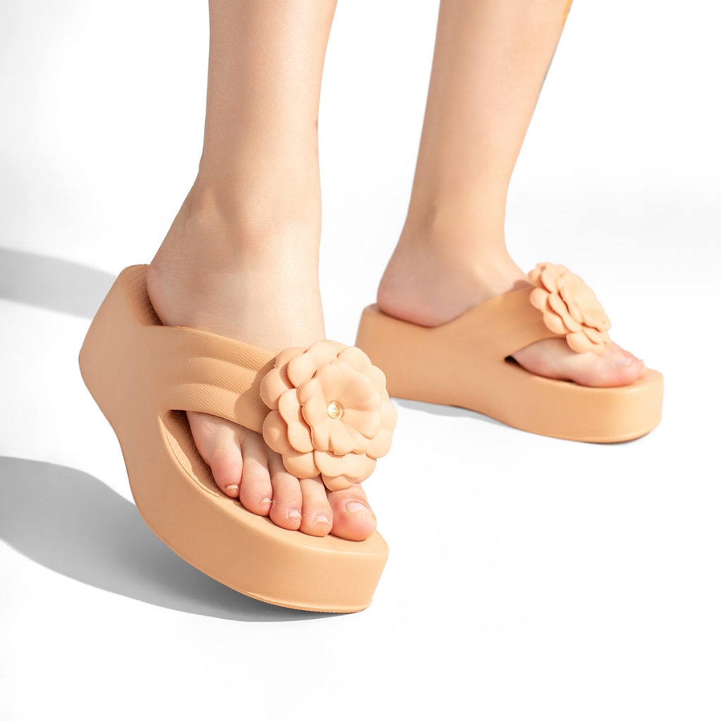 Chinelo Feminino Plataforma Salto com Flor Super Leve e Macio em EVA