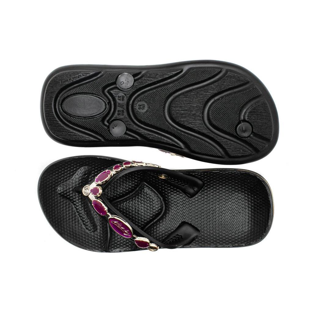 Chinelo Feminino Preto Ortopédico Antiderrapante com Pedrinhas Alcalay