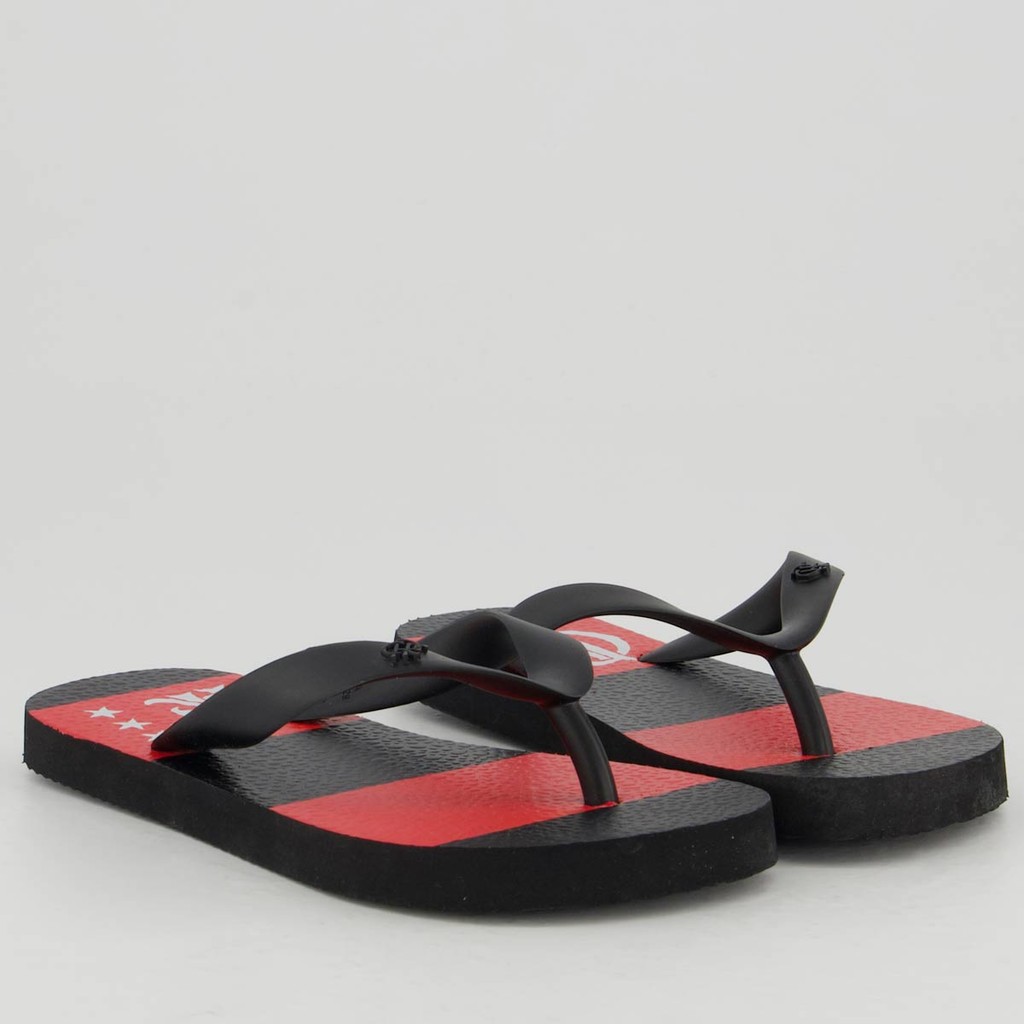 Composição: EVA Gênero: Unissex Idade: Infantil Clube: Flamengo Origem: Nacional Indicado para: Casual Tira: Divisora de dedos Cor predominante: Preta Composição tira: Material sintético Peso aproximado: 140g o par n° 27-28