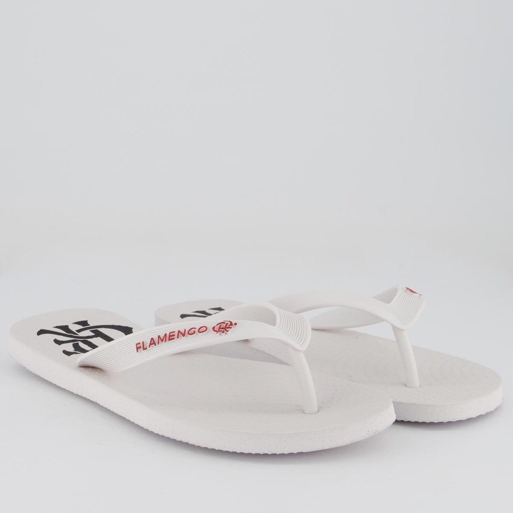 Composição: 100% EVA Indicado para: Casual Cor predominante: Branca Clube: Flamengo Origem: Nacional Gênero: Masculino Tira: Larga com divisor de dedos Composição tira: Material sintético Peso aproximado: 380g o par n°39-40