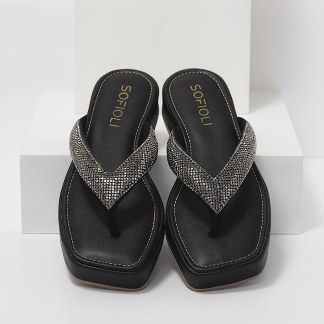 Chinelo Flat Sandália Feminina Brilho Strass De Dedo Luxo Sofiolí Confortável Moda Macio Leve