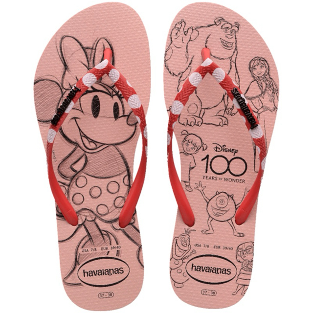 Chinelo Havaianas Slim Disney Minnie Mickey Tira Fina 100 Anos Feminina Infantil