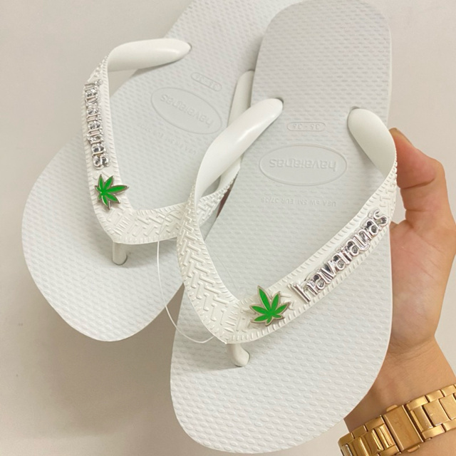 Chinelo Havaianas Top branco Pingentes Erva / plaquinha prata 23/24 ao 45/46 Original ®️