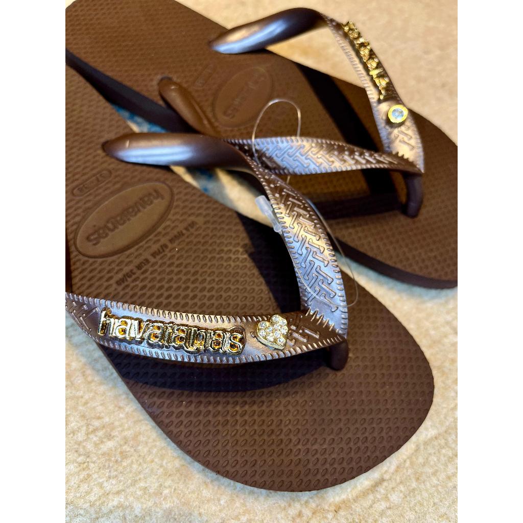 Chinelo Havaianas Top Café Marrom Ponto de Luz Feminino Personalizado com Logo Dourado Coração
