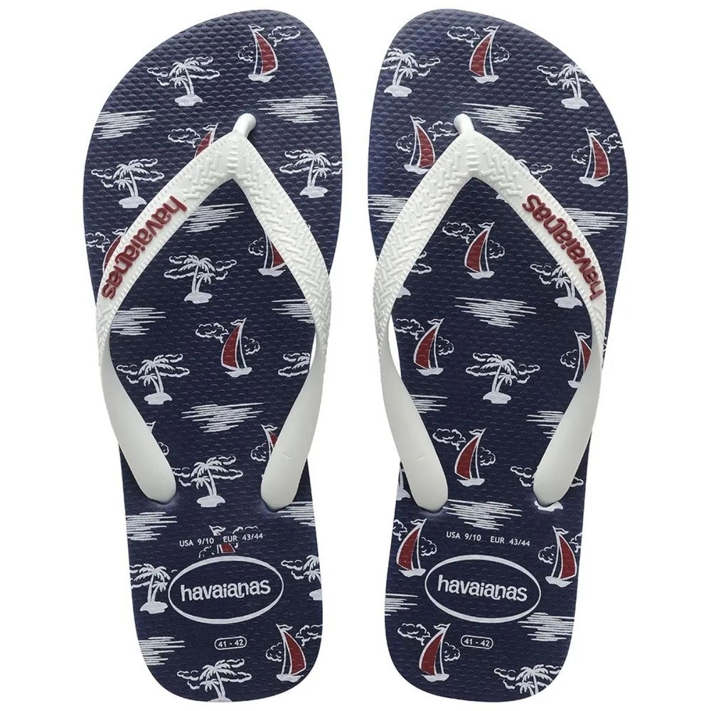 As Havaianas Top Nautical trazem todo o charme do estilo náutico. Com suas listras clássicas em versões atuais. Seja em azul e branco ou com outras cores no mix, esse chinelo é uma ótima escolha para quem é do mar.
