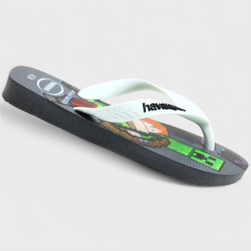 Chinelo Infantil Havaianas Kids Minecraft - Cinza e Branco