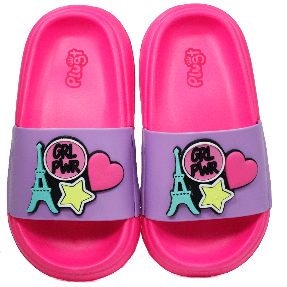 Chinelo Infantil Menina Slide Plugt Floquinho Girl Power Macio Piscina Natação Impermeável Fashion