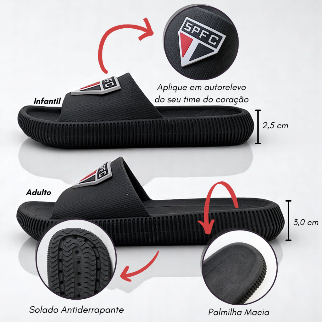 ⚽ Para quem carrega o amor pelo futebol até nos pés! Esse chinelo slide infantil masculino é a escolha perfeita para torcedores apaixonados que querem praticidade, conforto e estilo no dia a dia. Com design esportivo e escudo personalizado em alto relevo, ele é ideal para usar em casa, no churrasco com os amigos ou no pré-jogo. 🔥 POR QUE VOCÊ VAI CURTIR ESSE SLIDE? ► Estilo esportivo com escudo inspirado em clube tradicional do futebol brasileiro ► Conforto absoluto com material leve e palmilha macia ► Solado antiderrapante com ótima aderência ► Fácil de lavar, seca rápido e pronto pra qualquer ocasião ► Ideal para uso diário, praia, piscina ou momentos de lazer 📏 DETALHES DO PRODUTO ► Tamanhos disponíveis: 27/28 ao 39/40 ► Cor: Preto com escudo São Paulo 27/28 ---------- 18,5 cm 29/30 ---------- 21,0 cm 31/32 ---------- 21,5 cm 33/34 ---------- 22,5 cm 35/36 ---------- 23,0 cm 37/38 ---------- 25,0 cm 39/40 ---------- 26,0 cm ► Material: PVC expandido de alta qualidade ► Estilo: Slide masculino esportivo 🛒 Garanta agora o seu antes que acabe!