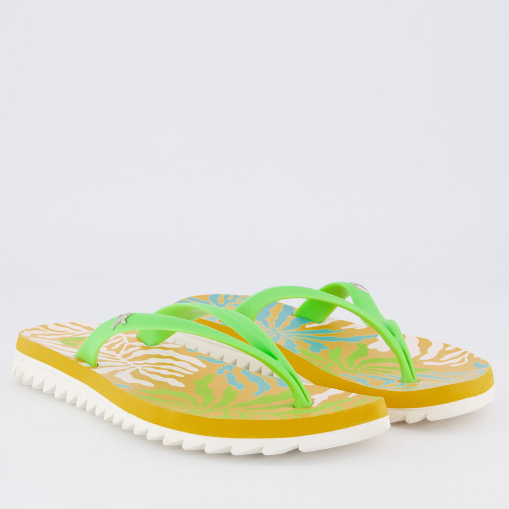 Tecnologia Endurance Pro: Solado supertratorado construido em borracha vulcanizada que promovendo mais segurança a cada passo Composição: EVA Origem: Nacional Gênero: Feminino Indicado para: Casual Tira: Divisora de dedos Cor predominante: Verde Solado: 100% borracha tratorada Composição tira: Material sintético Peso aproximado: 480g o par n° 40