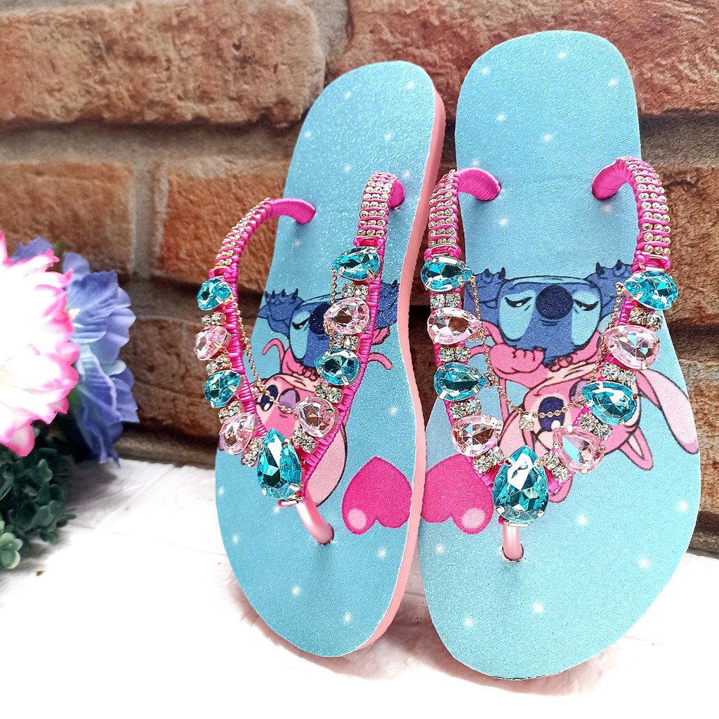 Chinelo lilo stitch com pedras decoradas exclusivas - chinelo slim original persocalizado