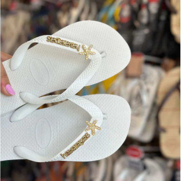 Chinelo Macio Havaianas Top (Branco) + Pin Placa Logo Dourado e Estrela do Mar