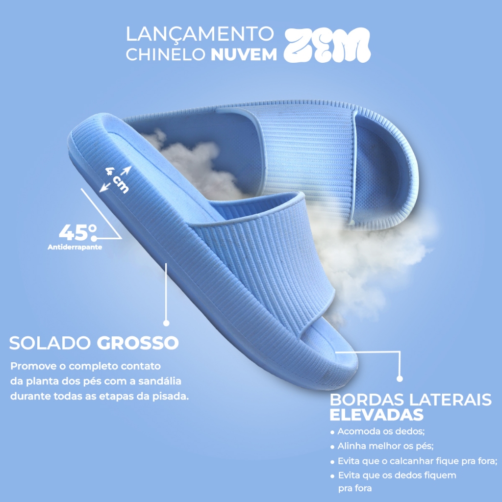 CHINELO NUVEM ZEM - CONFORTO PERFEITO AO SEU ALCANCE! Descubra uma experiência única de conforto com nossos chinelos Nuvem Zem, agora disponíveis para compra exclusiva! Desenvolvidos com uma sola robusta de 4 cm feita de PVC Ecológico Microexpandido, estes chinelos oferecem resistência superior ao desgaste, superando as expectativas dos chinelos tradicionais de EVA, além de serem mega sustentáveis. PRINCIPAIS CARACTERÍSTICAS: • COMPROMISSO SUSTENTÁVEL: O Chinelo Nuvem Zem é confeccionado com PVC ecológico expandido, um material 100% reciclável, vegano, livre de metais pesados, e composto por 70% de fontes renováveis. Nossos chinelos refletem um compromisso com a sustentabilidade sem sacrificar moda e conforto; • NÃO UTILIZAMOS E.V.A: O material E.V.A é responsável por diversas desvantagens ambientais. Não é biodegradável, difícil de reciclar, liberação de substâncias tóxicas, derivado de fontes não renováveis prejudiciais a saúde humana e ao meio ambiente, impactos nos ecossistemas, afetando a vida selvagem. • GÊNERO APLICÁVEL UNISEX: Perfeito para homens e mulheres que buscam unir conforto e estilo em cada passo. • AUMENTO DE ALTURA COM ESTILO: Desfrute dos 4 cm de sola que proporcionam um toque extra de altura com elegância; • VENTILAÇÃO EFICIENTE: Mantenha seus pés frescos durante todo o dia, garantindo conforto contínuo; • ANTIDERRAPANTE E RESISTENTE AO DESGASTE: Garanta estabilidade e durabilidade em qualquer ambiente; • ABSORÇÃO DE CHOQUE: Proteja seus pés contra impactos indesejados, proporcionando uma caminhada suave; • ANTI-ESTÁTICO: Prevenção contra eletricidade estática para um uso mais seguro em diferentes ambientes; • LEVEZA E ELASTICIDADE: Sinta a leveza nos pés com nossa sola elástica, aliviando a pressão e proporcionando um caminhar suave como nas nuvens.; • VARIEDADE DE CORES E TAMANHOS: Escolha entre uma paleta de cores elegantes - preto, branco, rosa, azul claro, verde militar, verde claro, laranja e nude. Disponíveis nos tamanhos 33/34, 35/36, 37/38, e 39/40, garantindo o ajuste perfeito para todos os estilos. TABELA DE MEDIDAS: TAMANHO - MEDIDA DO PÉ 33/34: 21 cm 35/36: 22 cm 37/38: 23 cm 39/40: 24 cm RECOMENDADO PARA PÉS GORDOS OU LARGOS: Escolha um tamanho maior para um ajuste perfeito, adaptando-se à diversidade de formatos de pés. NA DÚVIDA RECOMENDAMOS QUE COMPRE UM TAMANHO MAIOR. GARANTA O SEU AGORA Não perca a oportunidade de elevar seu conforto a um novo patamar. Faça seu pedido agora, adquira seu par de Chinelos Nuvem Zem e descubra o significado de caminhar nas nuvens. A qualidade e o conforto que seus pés merecem estão a apenas um clique de distância! **Aviso de Direitos Autorais** Estas imagens/descrição está protegida por direitos autorais. © ZEM CONFORT