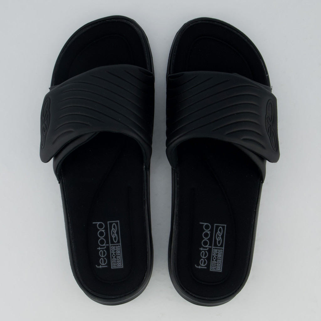 Tecnologia FEETPAD: Tecnologia para máximo conforto no dia a dia. Origem: Nacional Tira: Larga e única, com fecho fixado Composição: 100% EVA Indicado para: Casual Gênero: Unissex Cor predominante: Preto Composição tira: Material Sintético Peso aproximado: 340g o par n° 39/40