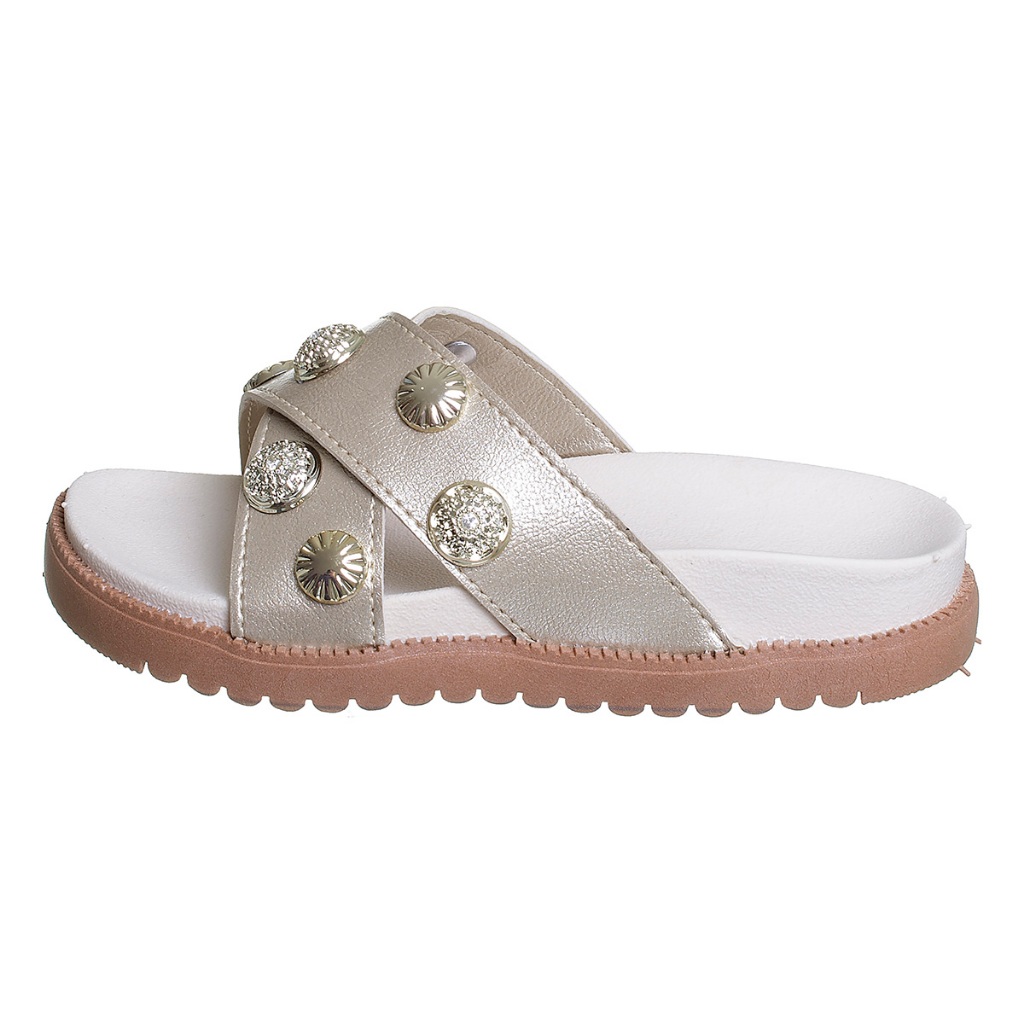 Chinelo Papete Feminina Mãe e Filha 28 ao 39 Dourado Tira Trançada Kidstep