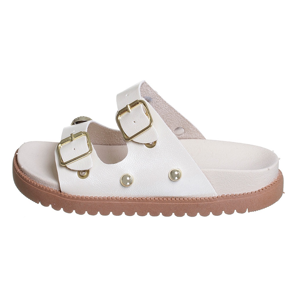 Chinelo Papete Feminina Mãe e Filha 28 ao 39 Off White com Fivela Kidstep