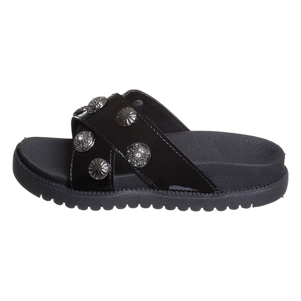 Chinelo Papete Feminina Mãe e Filha 28 ao 39 Preto Verniz Tira Trançada Kidstep