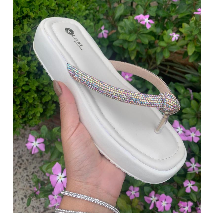 Chinelo Papete Feminino com Tira de Strass Original Sandália de Nó Confortável para o Fim de Ano