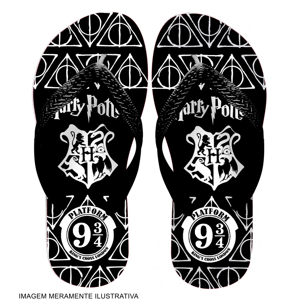 chinelo PRETO harry potter - brasao- tira preta -tira grossa- chinelo preto