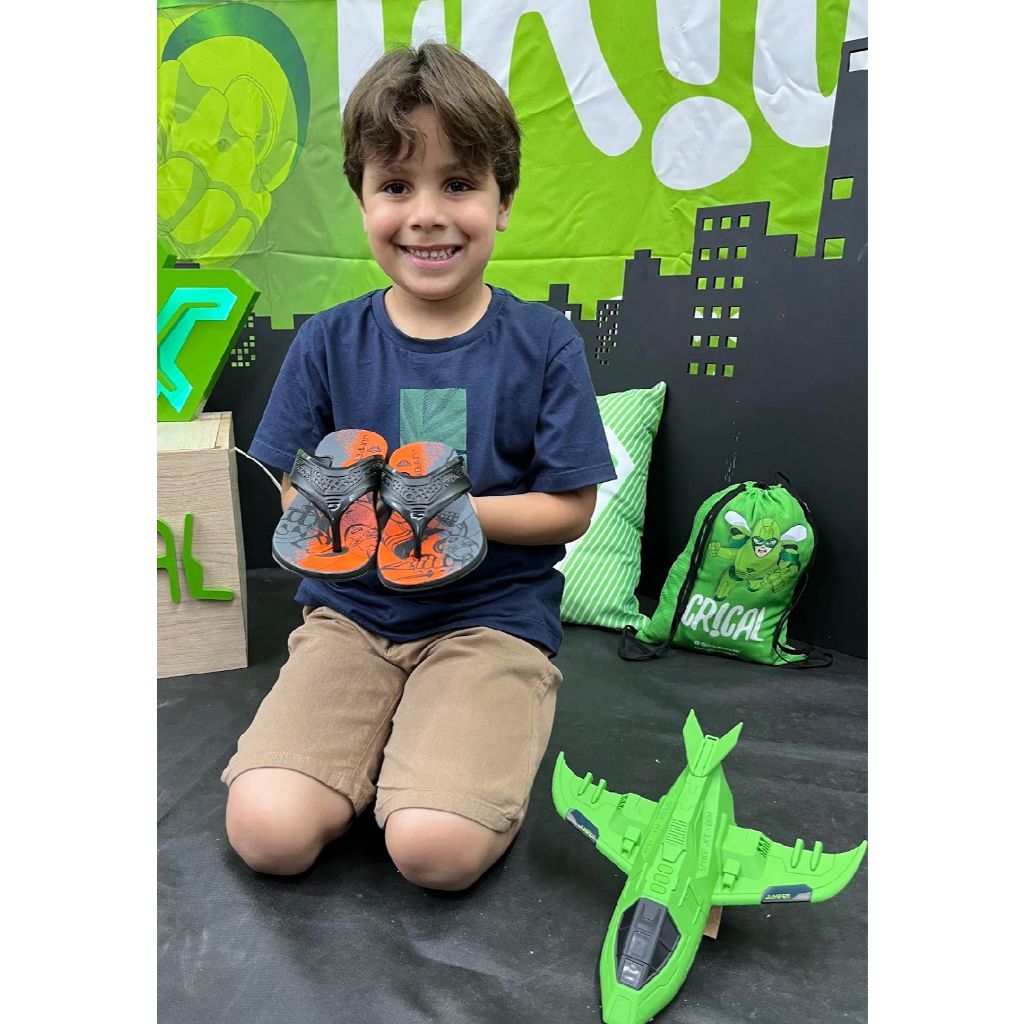 | Chinelo Resistente Infantil Meninos Com Brinquedo Avião Preto Laran... este produto | R$ 39,92 | 20% | 5.0/5 | 6 |