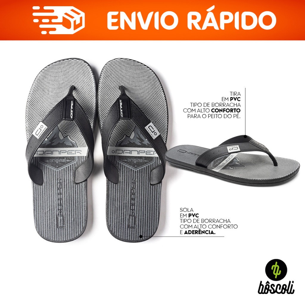 Chinelo Sandália de dedo Danper Adulto Masculino Original Marrom Preto Barcelona Atenção: Esse anúncio é apenas um PAR, o cliente poderá escolher somente a cor marrom ou preto. ................................................................... Loja Bôscoli Store ................................................................... >>>> Marrom ou Preto <<<< Escolha a cor e o tamanho no ato da compra. Chinelo todo mundo usa, todo mundo gosta! ................................................................... O Chinelo Danper Masculino é produzido em PVC nas tiras. Possui solado em PVC tipo de emborrachado que traz uma melhor aderência no chão. Palmilha macia, estampada com tema elegante. Chinelos muito confortáveis e duráveis. Não arrebenta as tiras. Suas tiras trazem o design moderno e elegante da Danper. Ideal para momentos de lazer, e para o uso no dia a dia. ................................................................... Informações adicionais dos calçados: itens do pacote= 1 par igual de chinelo casual conforme fotos do anúncio. Ideal para: dia a dia. Cabedal: tiras em PVC. Solado: em PVC. Palmilha: macia e com estampa. ................................................................... Garantia do Fabricante: Contra defeito de fabricação. ................................................................... ARMAZENAMENTO: Após o uso, seque o calçado a sombra por pelo menos 24 horas antes de ser guardado, para que o suor dos pés se evapore. Não guarde os calçados em lugares fechados por muito tempo. Ao guardar o produto em lugar fechado por aproximadamente um ano, eles pode apresentar manchas, o que não é avaliado como um defeito de fabricação. ................................................................... Medidas Aproximadas: __________________ Nº 37/38 - Sola 25cm __________________ Nº 39 - Sola 26cm __________________ Nº 40 - Sola 26,5cm __________________ Nº 41 - Sola 27,0cm __________________ Nº 42 - Sola 28,0cm __________________ Nº 43/44 - Sola 29cm __________________ Nº 45 - Sola 30cm