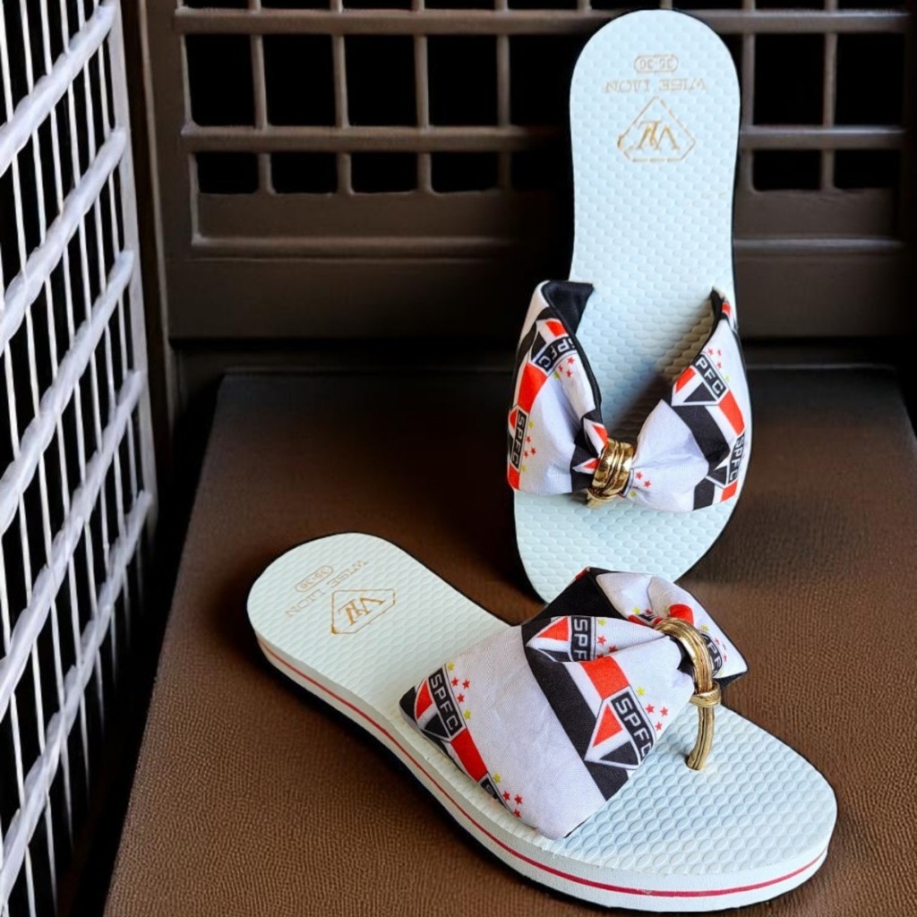 Chinelo Sandália Feminina Laço Pano Tecido Estampado Rasteirinha Floral