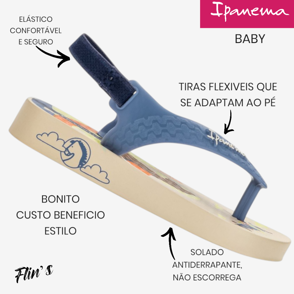IPANEMA BABY — Conforto e diversão nos pezinhos! 👶 Sandálias com design lúdico e apoio traseiro para os primeiros passos ✈️ Estampas de avião, ursinho entre outros que encanta crianças e pais. 💙 Tiras macias, seguras e fáceis de calçar. 📦 Pronta entrega! Garanta já o seu! Guia de tamanhos: 17/18 :12,5cm -19: 13,5cm - 20/21: 14,5cm - 22: 15,5cm - 23/24 : 16,5cm