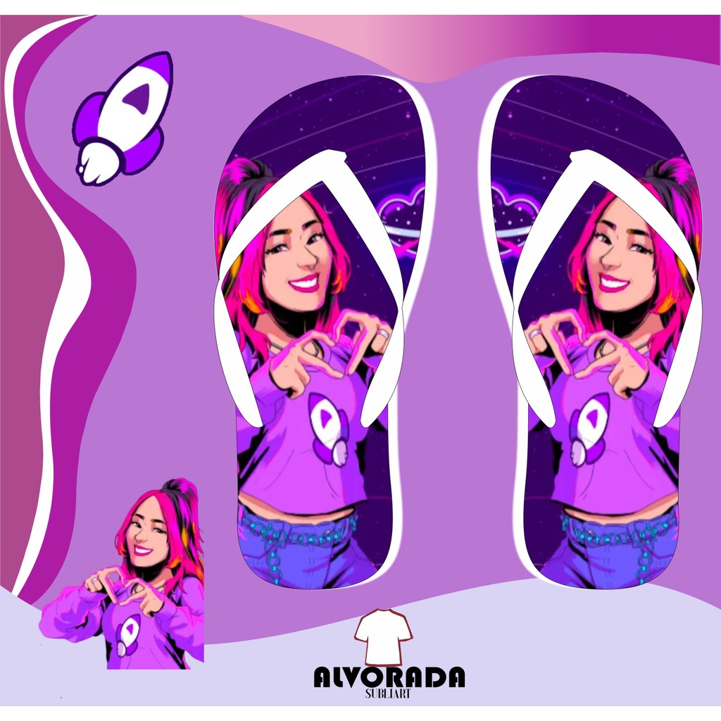 Chinelo Sandalia Katlen Katlenof Ketlen Personalizado Menina Youtuber Personagem Adulto Infantil