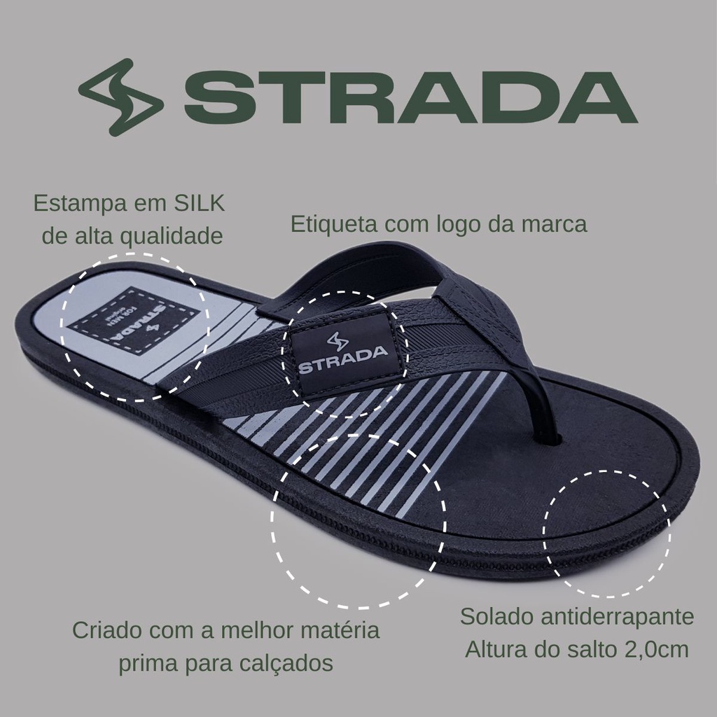 Chinelo Sandália Masculino Adulto Básico Casual Tiras Largas Borracha Original Strada Classic S01